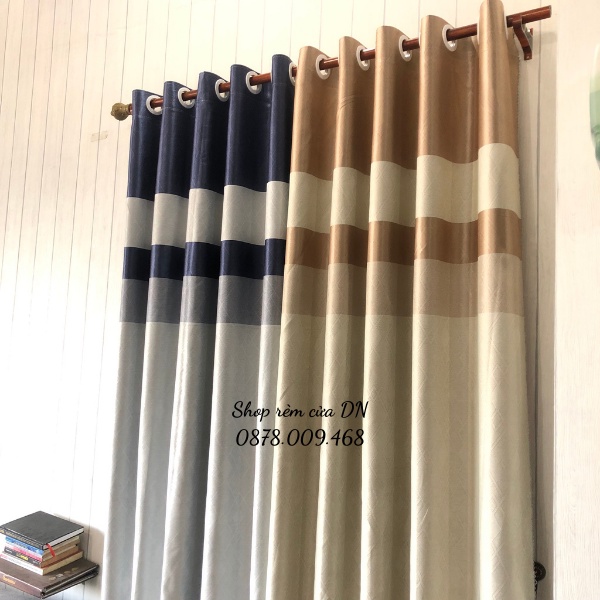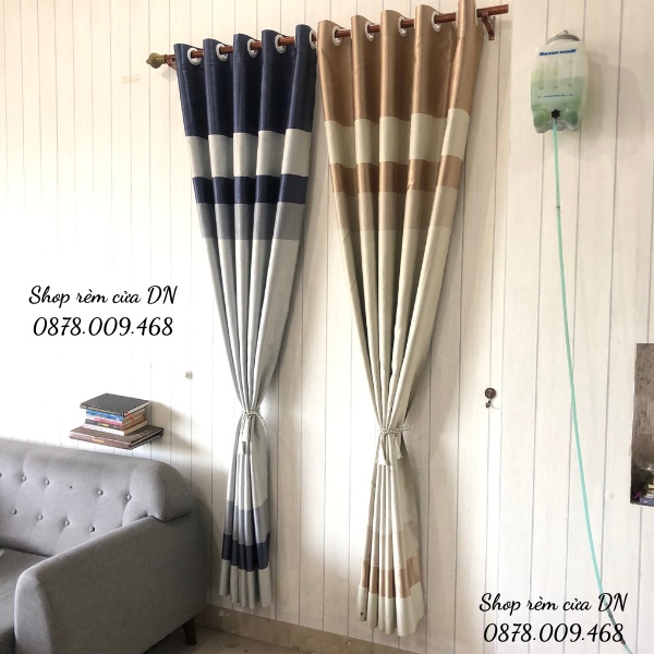 Rèm cửa sổ họa tiết sọc ngang,rèm cửa sổ chống nắng may sẳn màu kem và xanh đẹp,hiện đại giá tốt tặng kèm dây vén xịn.