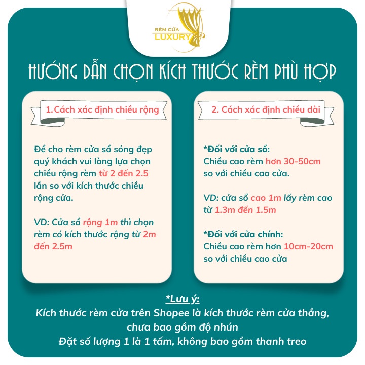- Kích thước rèm cửa trên là kích thước rèm cửa trải thẳng, chưa bao gồm độ nhún, không bao gồm thanh treo và lớp voan trắng.