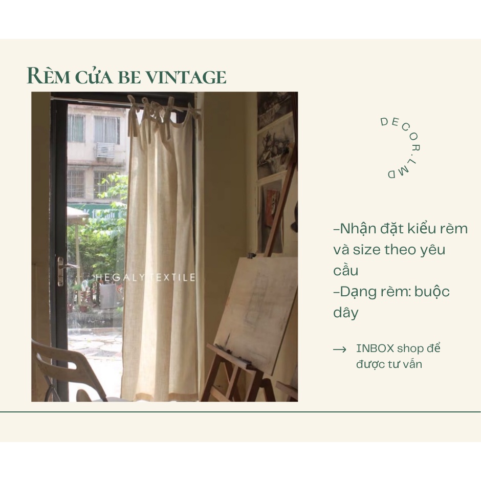 Nhà cửa & Đời sống > Trang trí nhà cửa > Rèm cửa, màn che || Rèm cửa sổ màu be dạng buộc dây vintage, rèm vải linen buộc nơ xinh xắn trang trí phòng ngủ, quán cafeCòn hàng