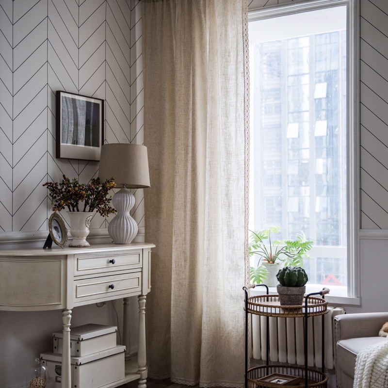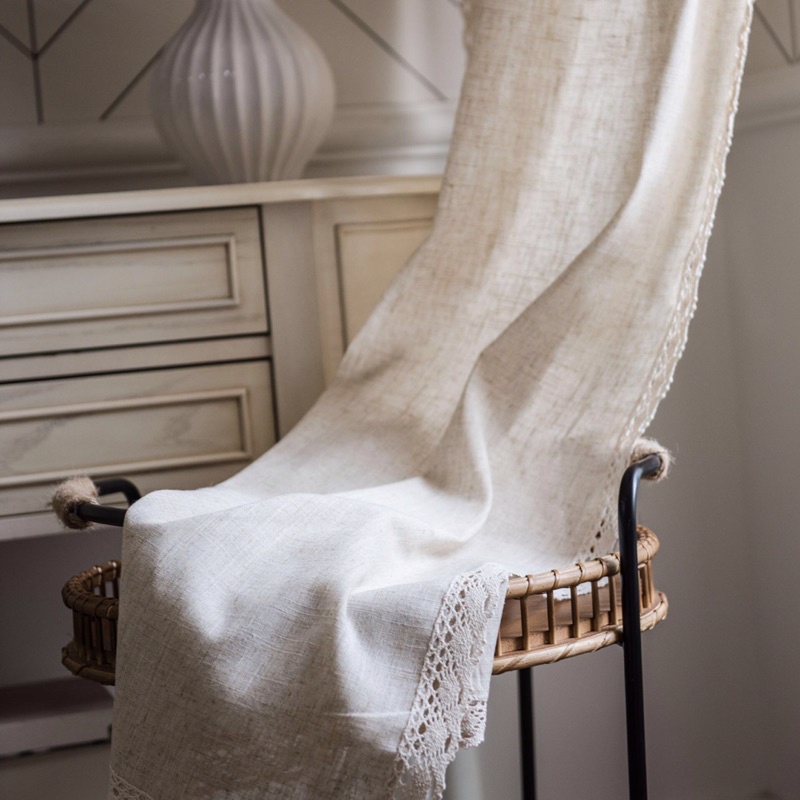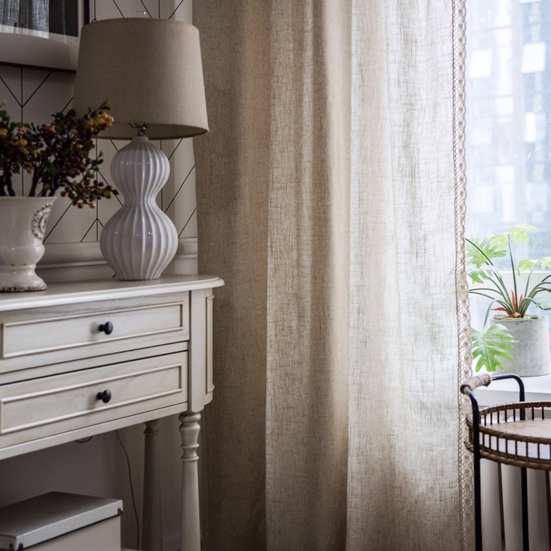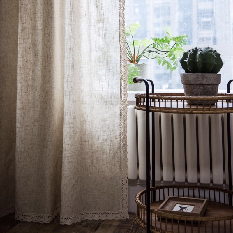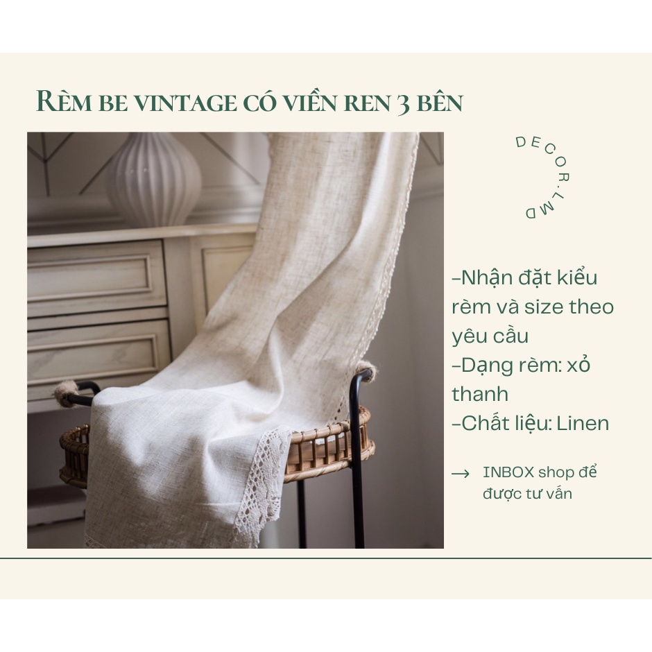 Rèm cửa sổ màu be vintage có viền ren ở mép,chống nắng cao cấp, màn vải treo tường trang trí decor phòng ngủ