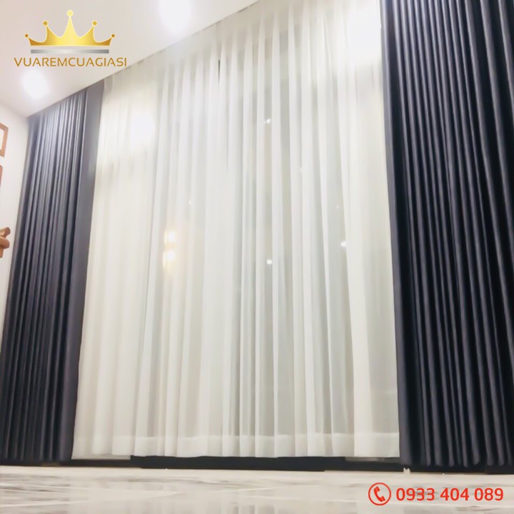 Rèm cửa sổ màu xám đậm chống nắng tốt, màn vải hiện đại trang trí cửa chính đẹp VIP10 Vuaremgiasi
