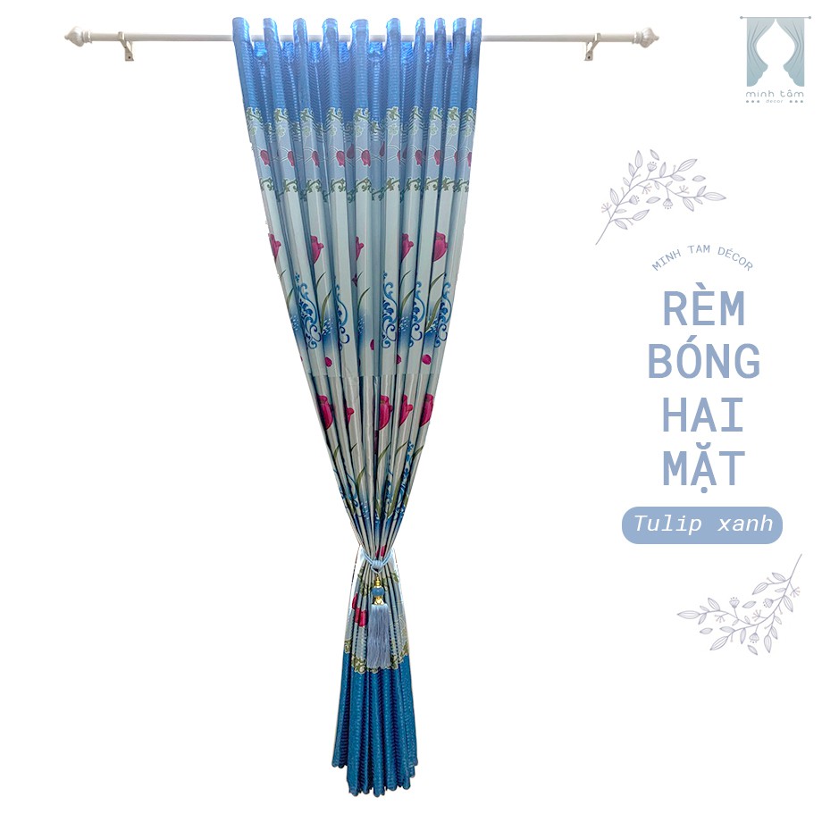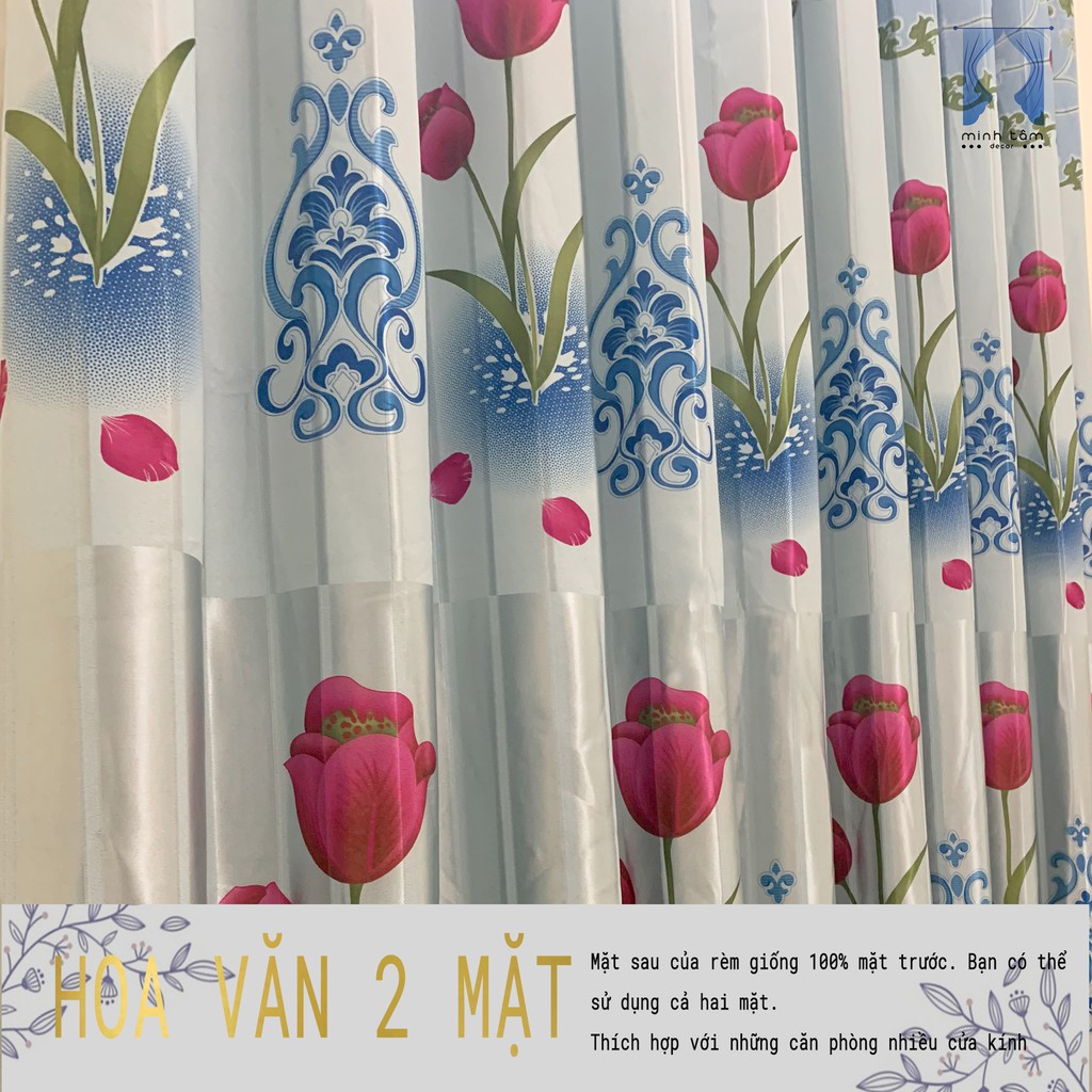 Giới thiệu Rèm cửa sổ Minh Tâm cản nắng , cách nhiệt, kiểu dáng ore, rèm dán tường - bóng 2 mặt hoạt tiết tulip xanh ( Kích thước n
