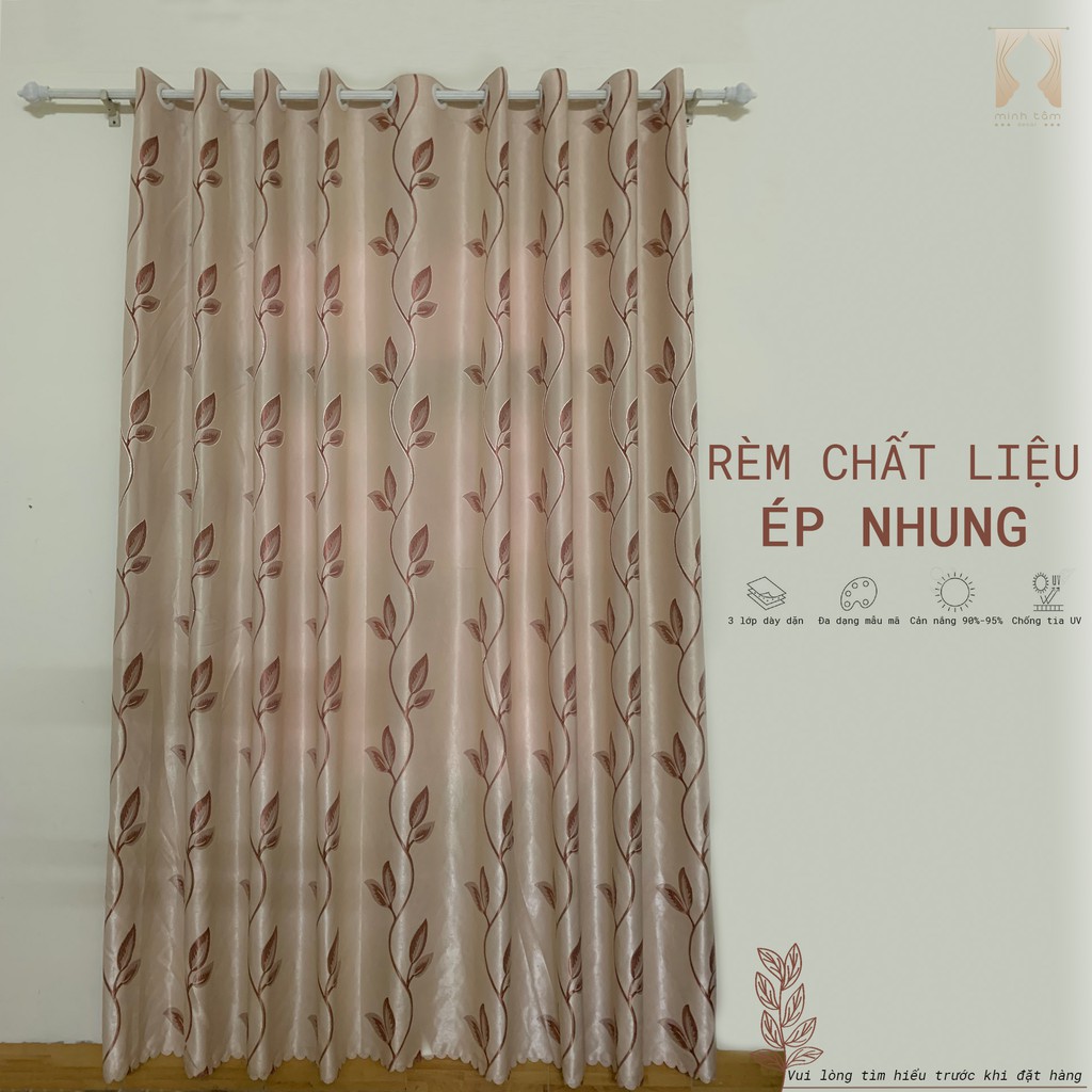 Giới thiệu Rèm cửa sổ Minh Tâm cản nắng , cách nhiệt, kiểu dáng ore, rèm dán tường - màu be chất liệu ép nhung hai mặt ( kích thước