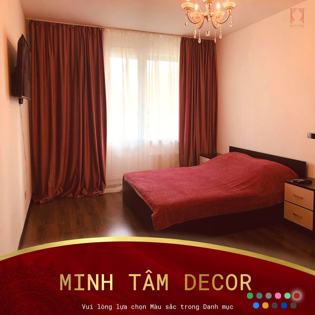 Giới thiệu Rèm cửa sổ Minh Tâm cản nắng , cách nhiệt, kiểu dáng ore, rèm dán tường - màu đỏ mận Kích thước nhỏ)