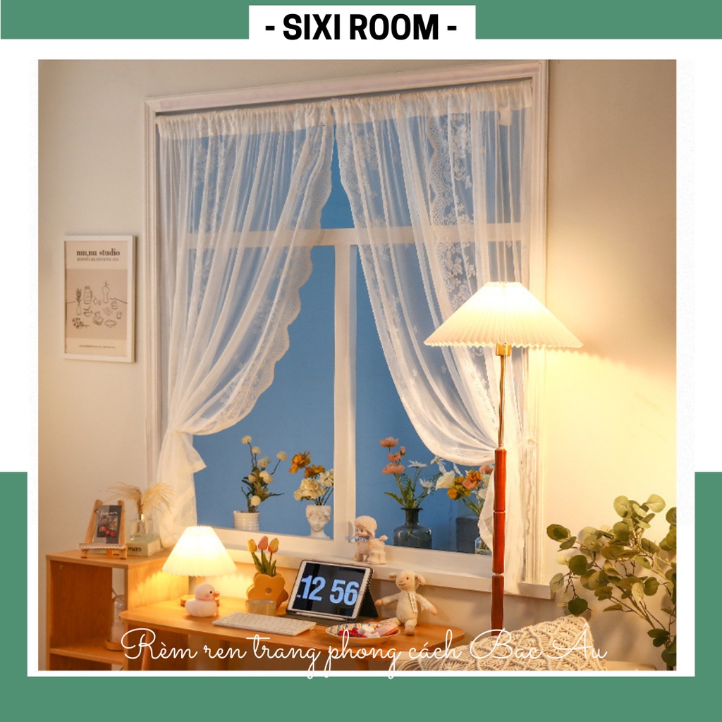Rèm cửa sổ phối Ren Trắng Phong Cách Bắc Âu trang trí phòng / phông nền chụp ảnh Vintage