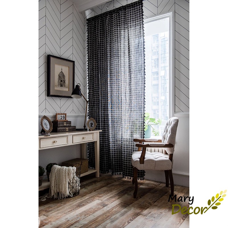 Nhà cửa & Đời sống > Trang trí nhà cửa > Rèm cửa, màn che || Rèm cửa sổ phòng ngủ cao cấp giá rẻ, mẫu mới nhất hiện nay chống nắng tốt - họa tiết Caro đen R-A02Còn hàng