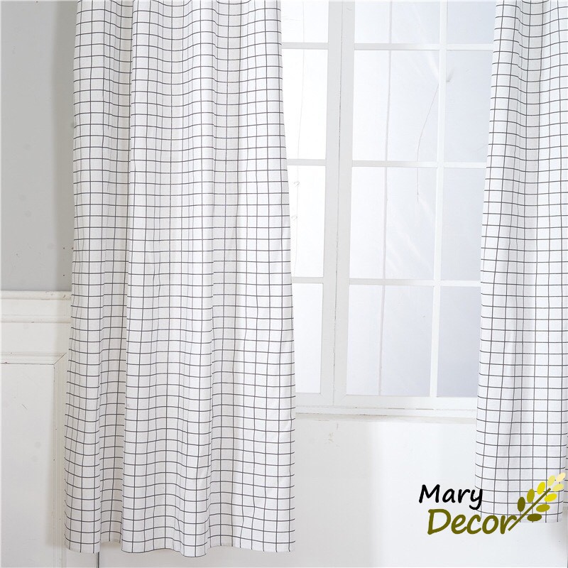 Nhà cửa & Đời sống > Trang trí nhà cửa > Rèm cửa, màn che || Rèm cửa sổ phòng ngủ cao cấp giá rẻ, mẫu mới nhất hiện nay chống nắng tốt - họa tiết Caro trắng R-A04Còn hàng