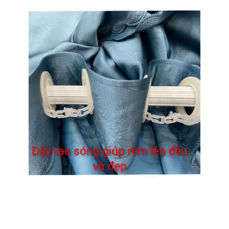 ✅ Rèm hoàn thiện bao gồm khoen tròn và dây tạo sóng.