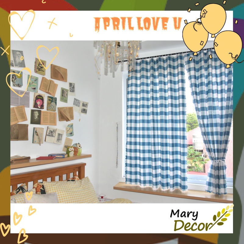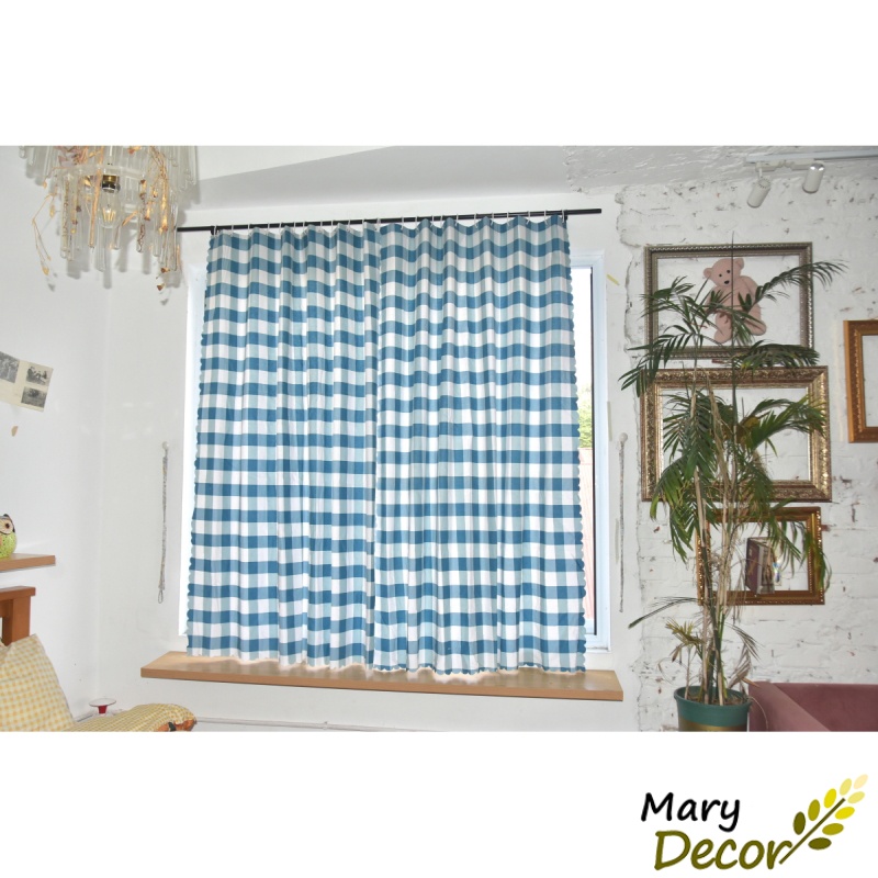 Nhà cửa & Đời sống > Trang trí nhà cửa > Rèm cửa, màn che || Rèm cửa sổ phòng ngủ chống nắng, màn vải treo tường trang trí decor cửa chính chất liệu cotton Caro xanh dương R-CC22Còn hàng