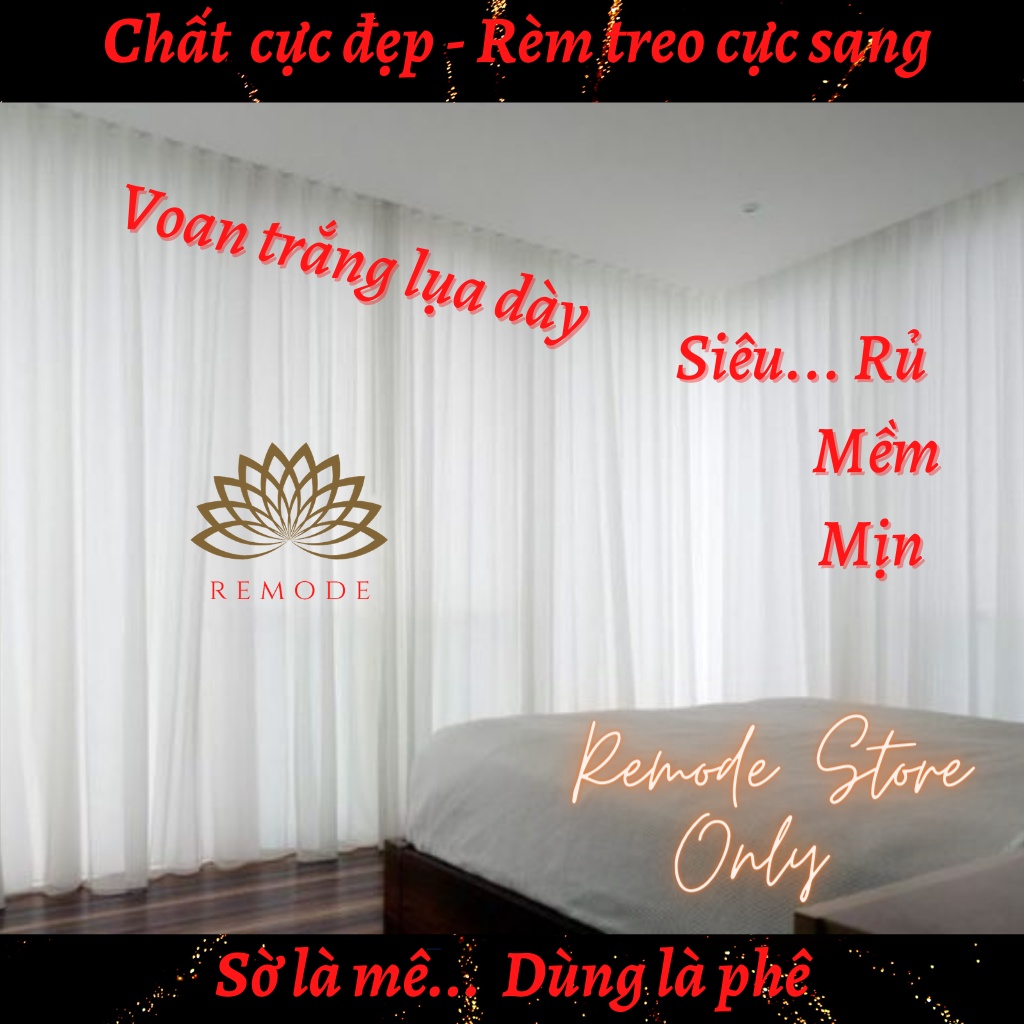 Rèm voan lụa dày màu trắng may kiểu rèm voan dán tường hoặc ORE treo thanh được nhiều khách hàng lựa chọn đặt mua dùng làm background chụp ảnh, phông nền chụp ảnh hoặc background livestream lên hình rất đẹp. Mẫu rèm trắng dán tường hiện đang là mẫu bán chạy nhất của REMODE