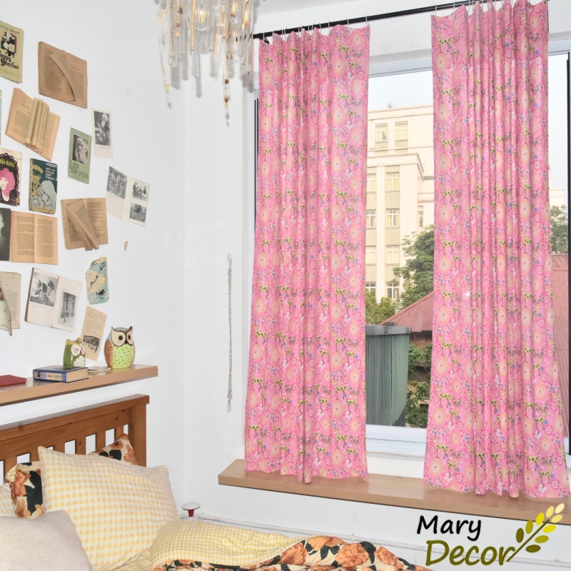 Rèm cửa sổ vải canvas hoạt hình màu sắc xinh đẹp phù hợp dán tường treo cửa treo giường tầng gác lửng Hươu hồng R-A10