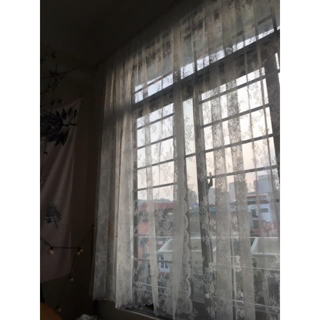 Nhà cửa & Đời sống > Trang trí nhà cửa > Rèm cửa, màn che || Rèm cửa sổ vải voan xốp họa tiết ren siêu sang kích thước 1,45mx1,85mCòn hàng