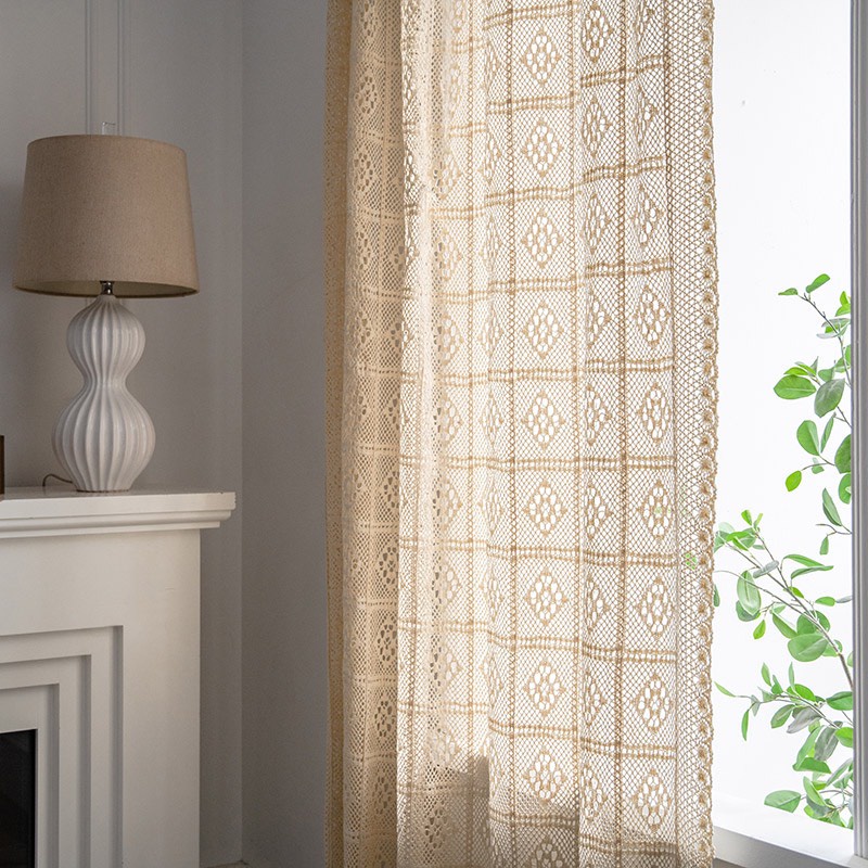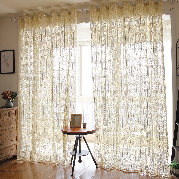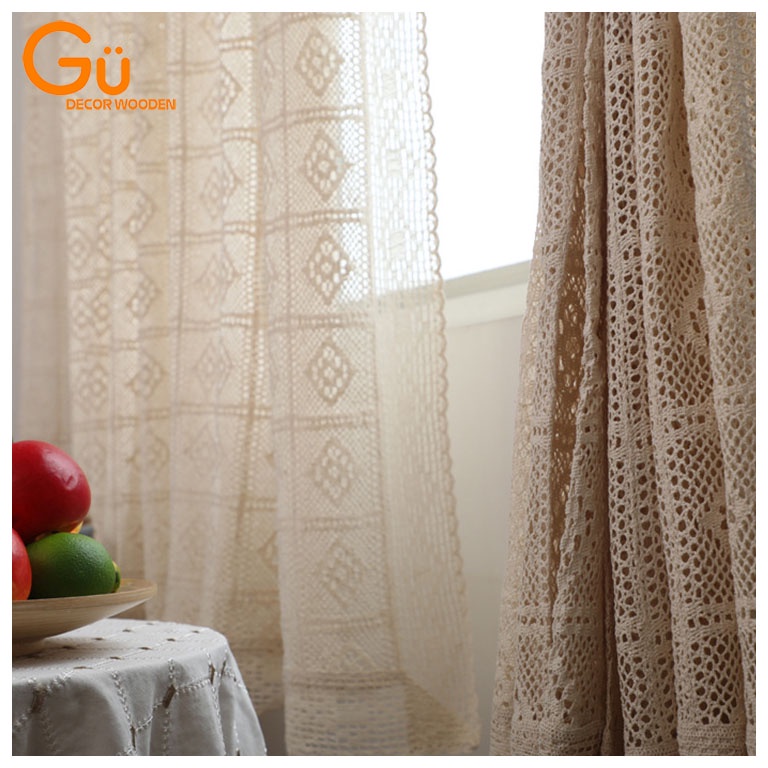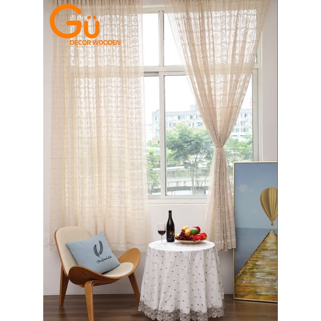 Nhà cửa & Đời sống > Trang trí nhà cửa > Rèm cửa, màn che || Rèm cửa sổ Vintage vải ren dày dặn,Màn vải trắng ngà Trang trí Phòng ngủ GU DECOR WOODENCòn hàng