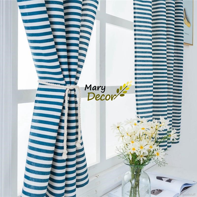 Nhà cửa & Đời sống > Trang trí nhà cửa > Rèm cửa, màn che || Rèm cửa trang trí vải bố linen đẹp - họa tiết sọc xanh to R-I07Còn hàng