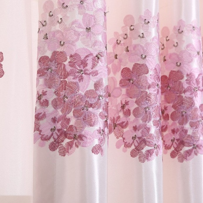 Rèm cửa treo họa tiết thêu hoa cẩm tú cầu hồng nhiều kích thước ( giá bán không kèm voan)