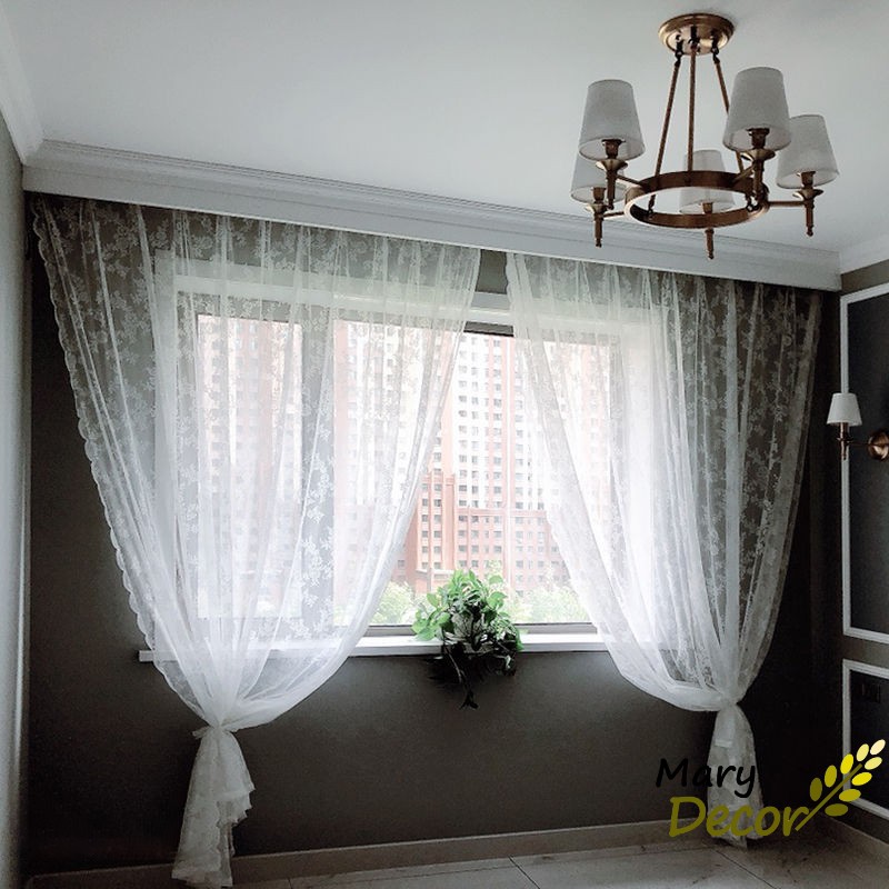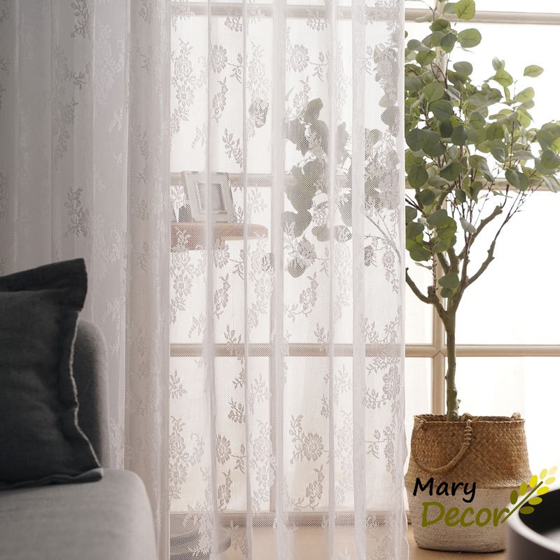 Rèm cửa sổ vải voan họa tiết ren hoa sang trọng cho trang trí nhà
