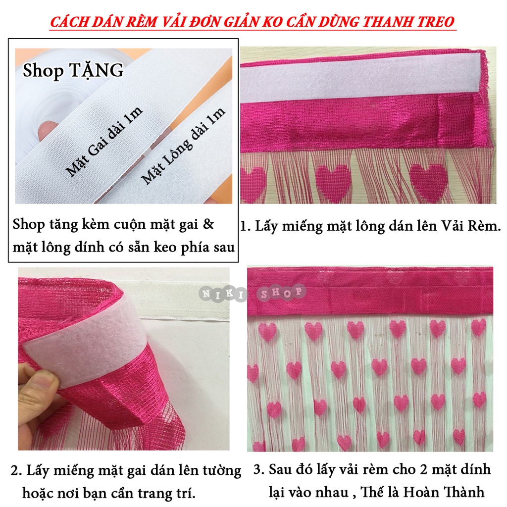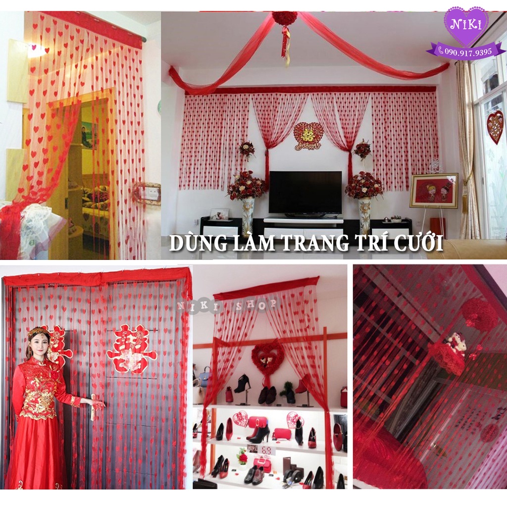 RÈM CỬA VẢI SỢI TRÁI TIM TRANG TRÍ CƯỚI 2m- CỬA - CỬA SỔ , PHÒNG- TĂNG BĂNG GAI DÁN 2 MẶT