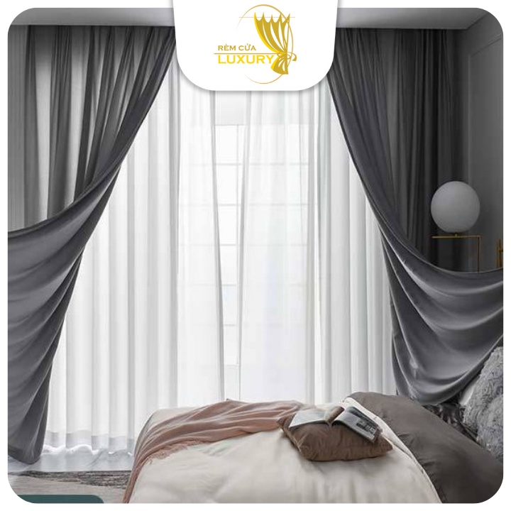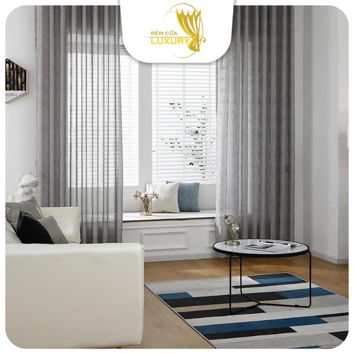 Rèm cửa voan trắng, xám may ore và dán tường cửa sổ cửa đi decor phòng khách phòng ngủ Lux15