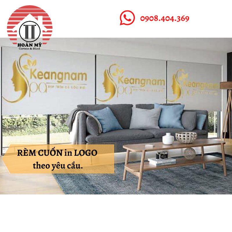 RÈM CUỐN IN LOGO TÊN THƯƠNG HIỆU ĐẶT THEO KÍCH THƯỚC YÊU CẦU.Rèm cuốn in logo là sản phẩm mà công ty cung cấp cho khách hàng có nhu cầu in logo lên sản phẩm trưng bày ở các ô kính. sản phẩm tính theo m2. (giá 370.000/m2)