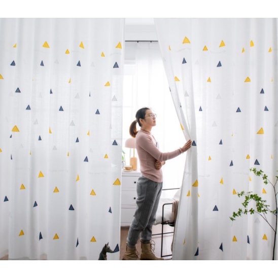 Rèm cửa loại dán tiện lợi mẫu tam giác xanh vàng