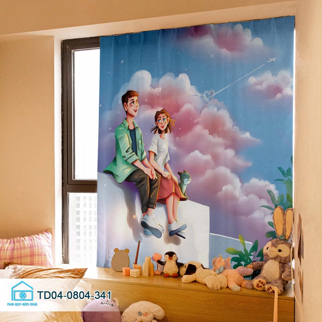 Rèm dán cửa cặp đôi, cô gái dễ thương Tín Phát Decor, rèm cửa sổ dán tường tiện lợi, dễ lắp