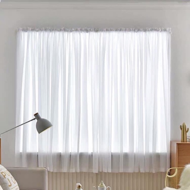 Thiết kế đơn giản là ưu điểm của mẫu rèm voan mờ. Mẫu rèm này không đi kèm hoa văn và vì vậy, có thể kết hợp với rèm vải một lớp hay các concept khác nhau như minimal, vintage, cottage, basic,...