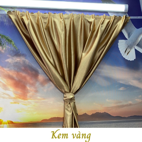✅ Rèm dám tường vàng kem có 2 lớp: Lớp bóng Polyester chống tia UV + lớp gấm cao cấp.