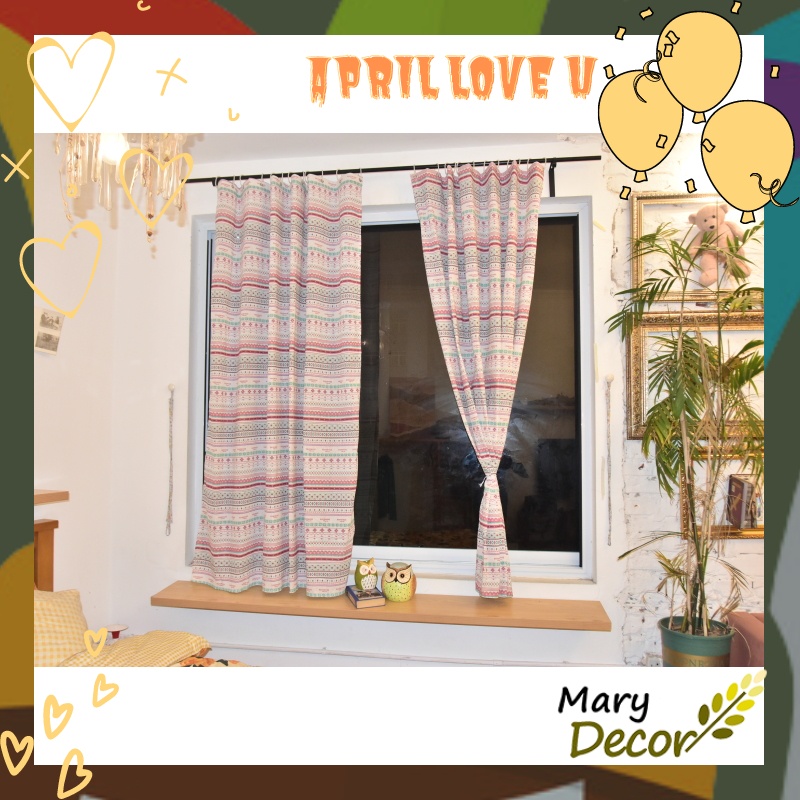 Rèm dán tường treo thanh cửa sổ cửa chính phong cách vintage decor homestay họa tiết Thổ cẩm R-L10