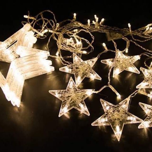 Rèm dây nháy hình ngôi sao trang trí gồm 12 dây rủ (6 sao to và 6 sao nhỏ). Sao to dài 1,5m, sao nhỏ dài 0,6m. Chiều dài dây 2,5m. Dây Đèn Nháy dùng để trang trí trong nhà, cầu thang, ban công, trang trí tiệc shop...Giá DOGEAI