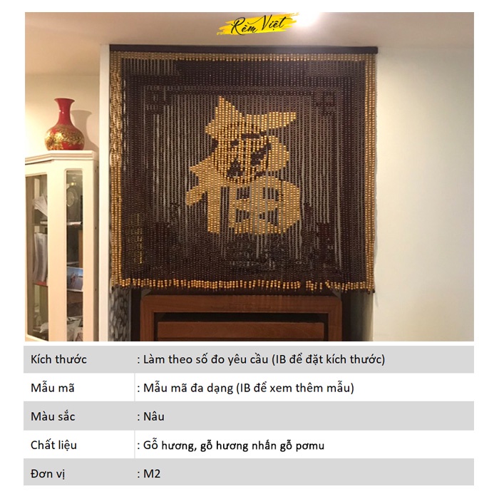 Nhà cửa & Đời sống > Trang trí nhà cửa > Rèm cửa, màn che || Rèm hạt gỗ Hương, Nhấn gỗ Pơmu, Mành phong thủy, Che bàn thờ, Nhận làm mọi kích thước - Thế giới rèm ViệtCòn hàng