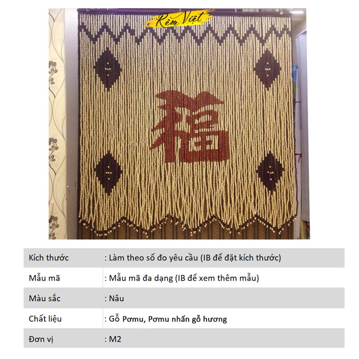 Nhà cửa & Đời sống > Trang trí nhà cửa > Rèm cửa, màn che || Rèm hạt gỗ Pơmu, Nhấn gỗ Hương, Rèm phong thủy, Mang lại vượng khí, Làm theo số đo yêu cầu, Mẫu mã đa dạngCòn hàng