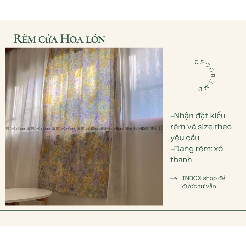 Rèm hoa lớn Hàn Quốc phong cách cổ điển vintage chống nắng cao cấp, màn vải treo tường trang trí decor phòng ngủ