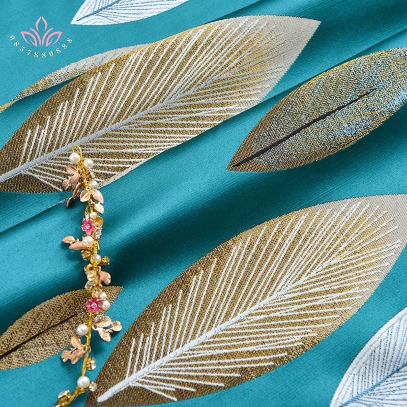 Rèm hoa văn cản nắng,rèm cửa gấm in 3d 2022 xanh dịu mát