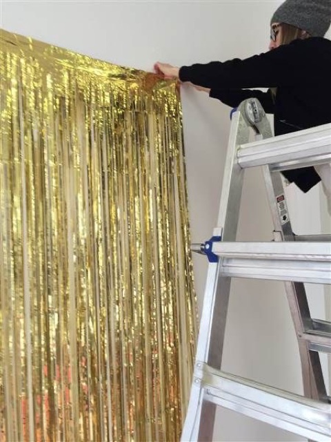 -Để che khuyết điểm màn kim tuyến ở trên các bạn có thể dùng bong bóng mua thêm để che phía trên đỉnh đầu của rèm.