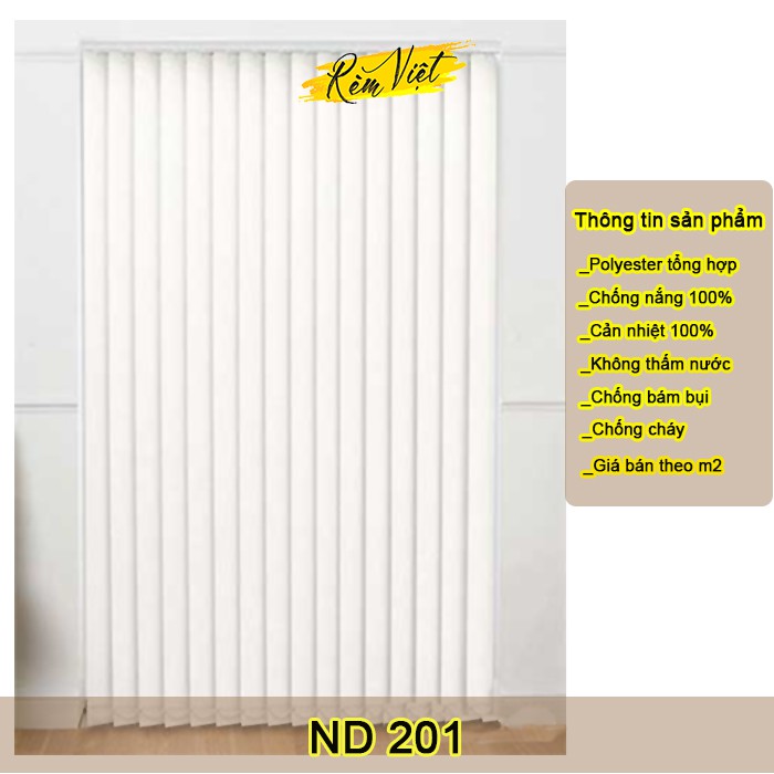 – Vải rèm: được cắt thành từng lá khổ dọc đứng với kích thước mỗi lá dọc như vậy là khoảng 89mm, 100mm, 127mm và tuỳ thuộc vào khung cửa mà lựa chọn kích thước lá rèm phù hợp.