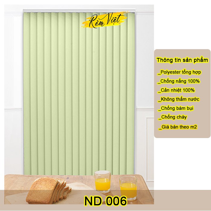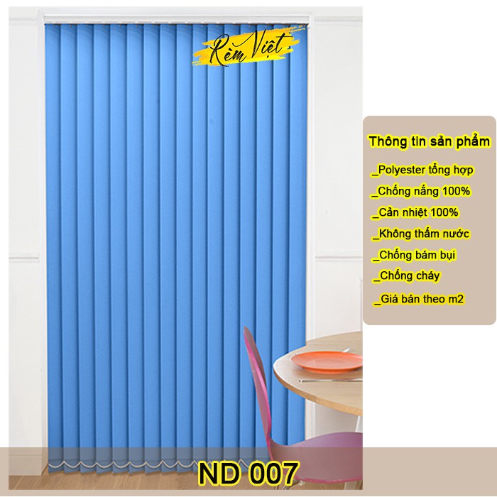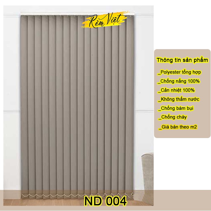 Rèm lá dọc được làm từ chất liệu Polyester 100%, chất liệu vải tương ứng và được lựa chọn chung với rèm cuốn, có mức độ chống nắng và cản sáng rất cao. Giúp cho chúng ta có không gian văn phòng mát mẻ, thoải mái và tập trung cao độ với công việc của mình.