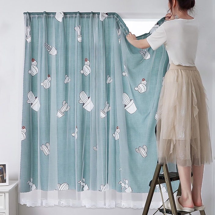 Rèm Màn Cửa Dán Họa Tiết Xinh Che Nắng Trang Trí Phòng Ngủ, Khách, Cửa Sổ Phong Cách Hàn Quốc sb sieubuon