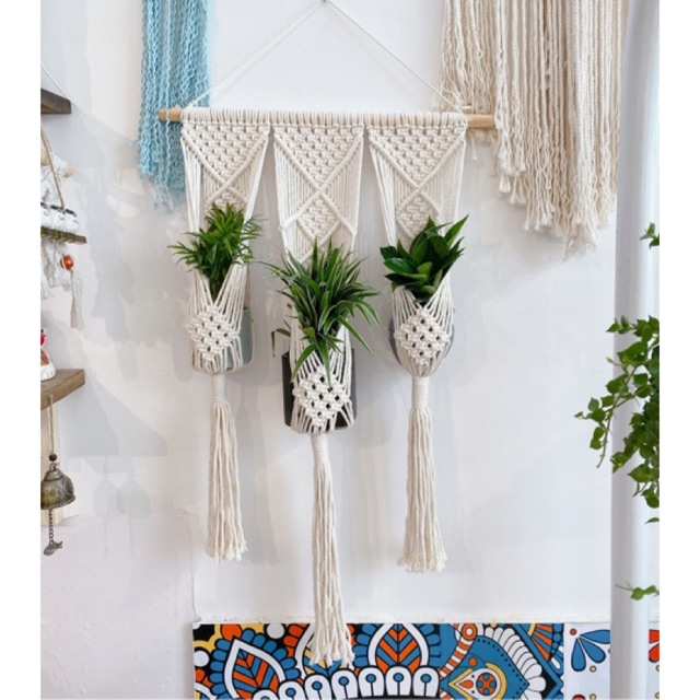 Nhà cửa & Đời sống > Trang trí nhà cửa > Rèm cửa, màn che || Rèm macramé treo cây trang trí 3 chậuCòn hàng