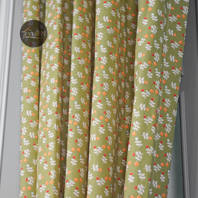 Nhà cửa & Đời sống > Trang trí nhà cửa > Rèm cửa, màn che || Rèm may sẵn Everon màu xanh cốm họa tiết cherry nhỏ xinh - 003Còn hàng