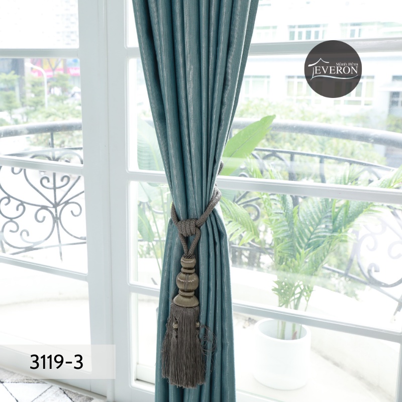 Rèm may sẵn Everon nhiều kích thước, vải trơn bóng, màu xanh ngọc bích