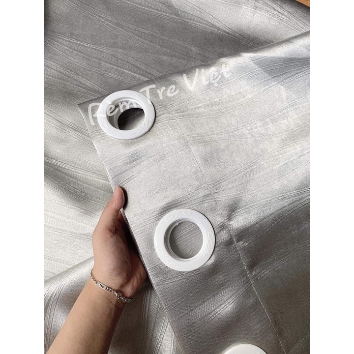 bên em có 2 loại may để phù hợp dành cho khách dùng ạ. 1 loại là khoen lỗ sẵn ạ về chỉ việc luồn thanh qua vải là treo được thôi ạ, còn loại kia là e máy móc nhựa sẵn ạ về chỉ việc treo vào dây hoặc thanh inox tiện cho những khách hàng dùng bình dân và dùng tạm ạ.