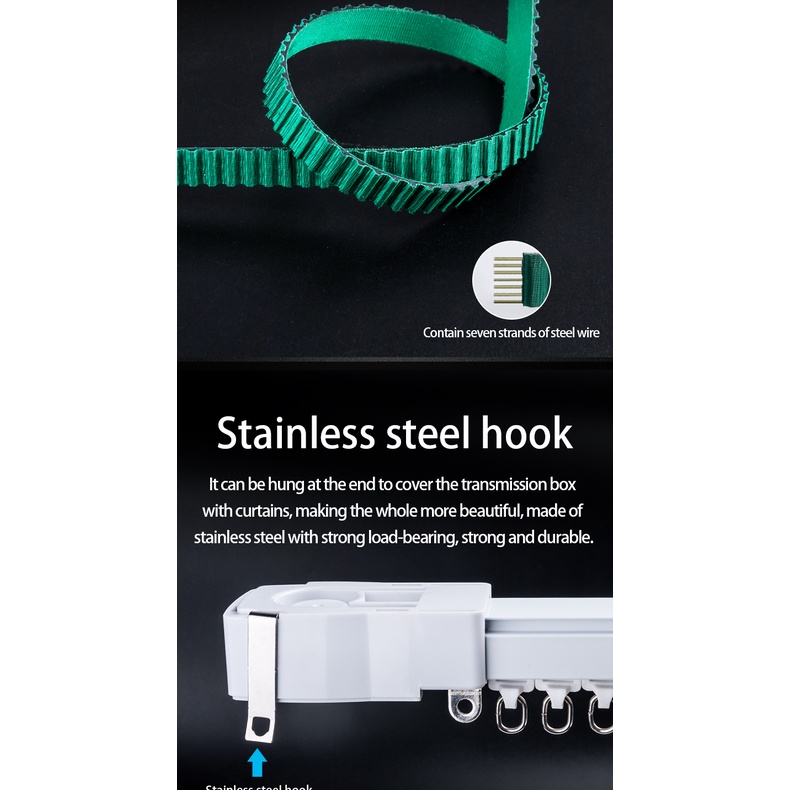 - Phụ kiện đi kèm là phụ kiện cao cấp, chất lương như thanh ray thế hệ mới, dây rèm 7 lõi...