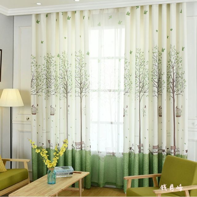 Nhà cửa & Đời sống > Trang trí nhà cửa > Rèm cửa, màn che || Rèm treo cửa mẫu cây xanh và lồng chim (1x2.7m, 2x2.7m, 3x2.7m)Còn hàng