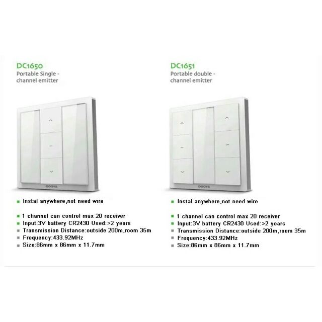 _ Thương hiệu: Dooya_ Dòng sản phẩm: DC1650 ( khiển đơn), DC1651 ( khiển đôi)