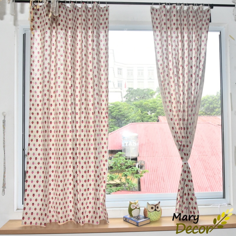 Rèm vải canvas dán tường treo thanh trang trí cửa sổ phòng ngủ rèm giường ký túc xá Dâu tây R-H03