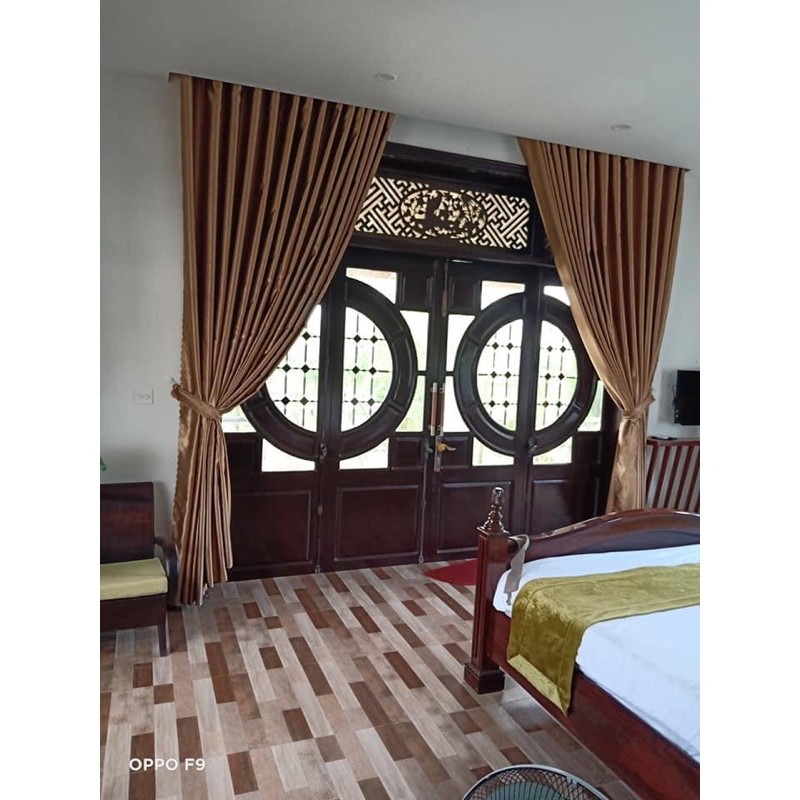 Sản phẩm rèm vải bố màu vàng đồng chống nắng 100%.May sẳn ống,khách yêu chỉ cần luồn cây là sử dụng được luôn,quá chi tiện lợi luôn ạ.