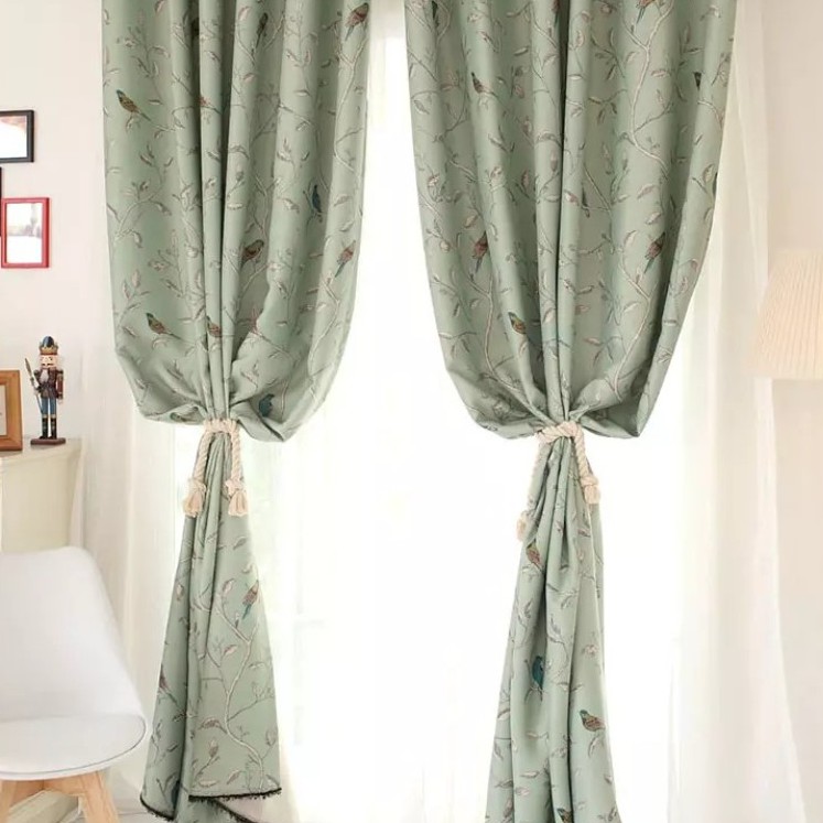 Rèm vải dày chim đậu cành cây màu xanh nhiều kích thước ( giá bán 1 tấm )