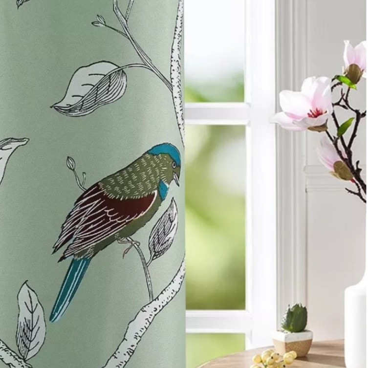 Rèm vải dày họa tiết chim đậu cành cây nhiều màu (nhiều kich thước)