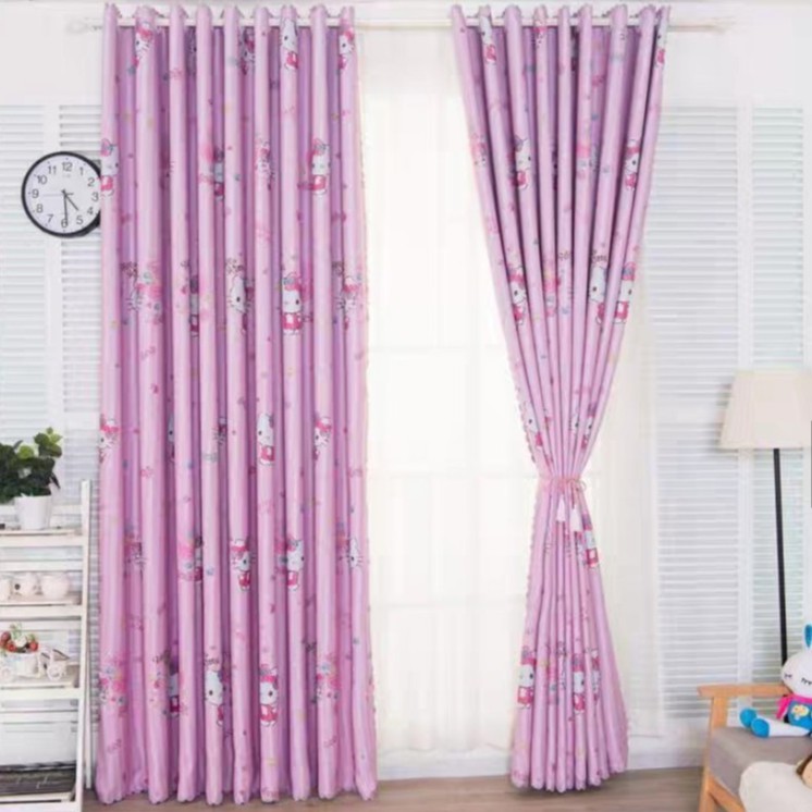 Giới thiệu Rèm vải dày kitty sọc hồng chiều cao 2.7m nhiều kích thước ( giá bán 1 tấm )