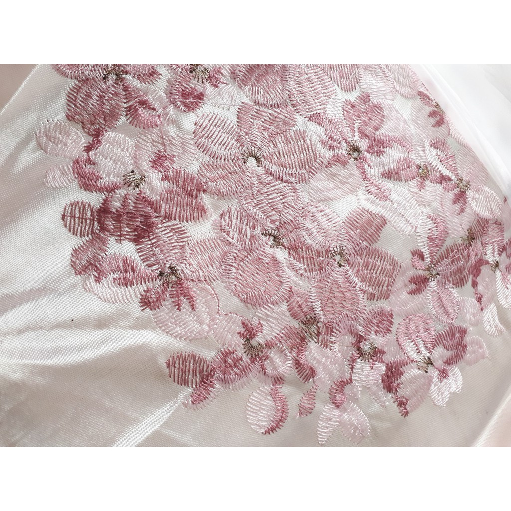 Giới thiệu Rèm vải treo cửa thêu hoa tú cầu hồng (nhiều kích thước ) không có lớp voan - kèm hình thật
